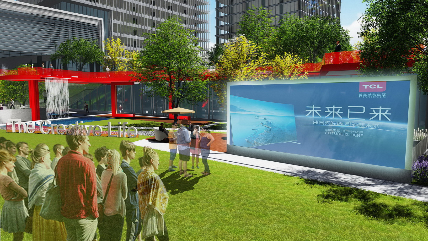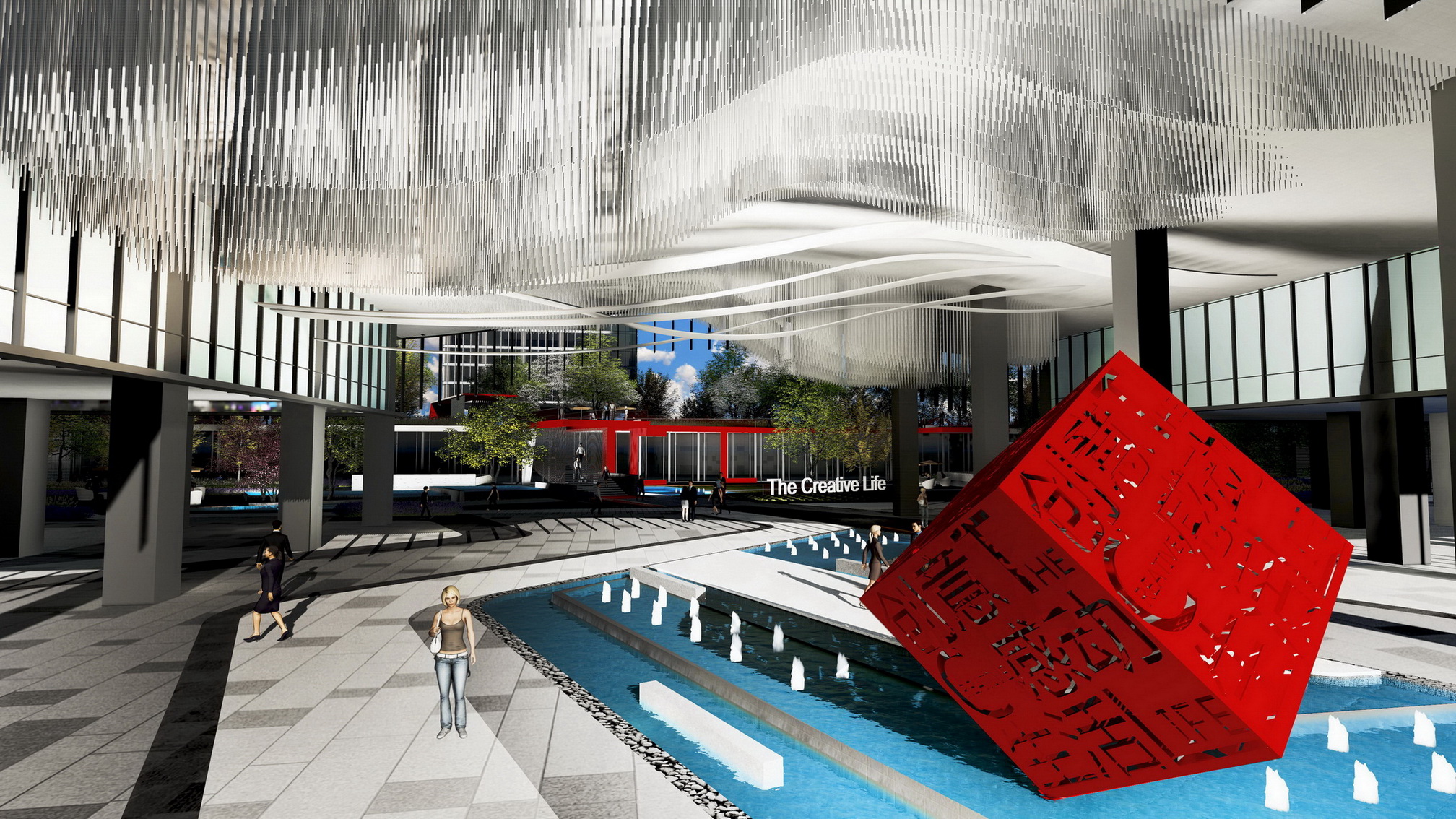 項目為高新科技園區(qū),設(shè)計從商業(yè)、辦公、居住一體化出發(fā),讓綠色聯(lián)動生活。通過景觀帶動商業(yè),景觀為商業(yè)和辦公客戶服務(wù),使建筑、景觀、商業(yè)、人有機地融為一體。通過三維的、立體的、自由飄逸的立體空間網(wǎng)絡(luò)有效整合不同人群的活動需求,營造出更加便捷的工作流線,更加簡約的基礎(chǔ)設(shè)施,更加活躍的共享平臺。同時不局限于傳統(tǒng)園林范疇的感受和體驗,打造可視化的多媒體景觀,極富互動性的開放空間,讓藝術(shù)、教育和公共媒體在此交匯、相融,從而使之躍升成為一個面向未來的項目。