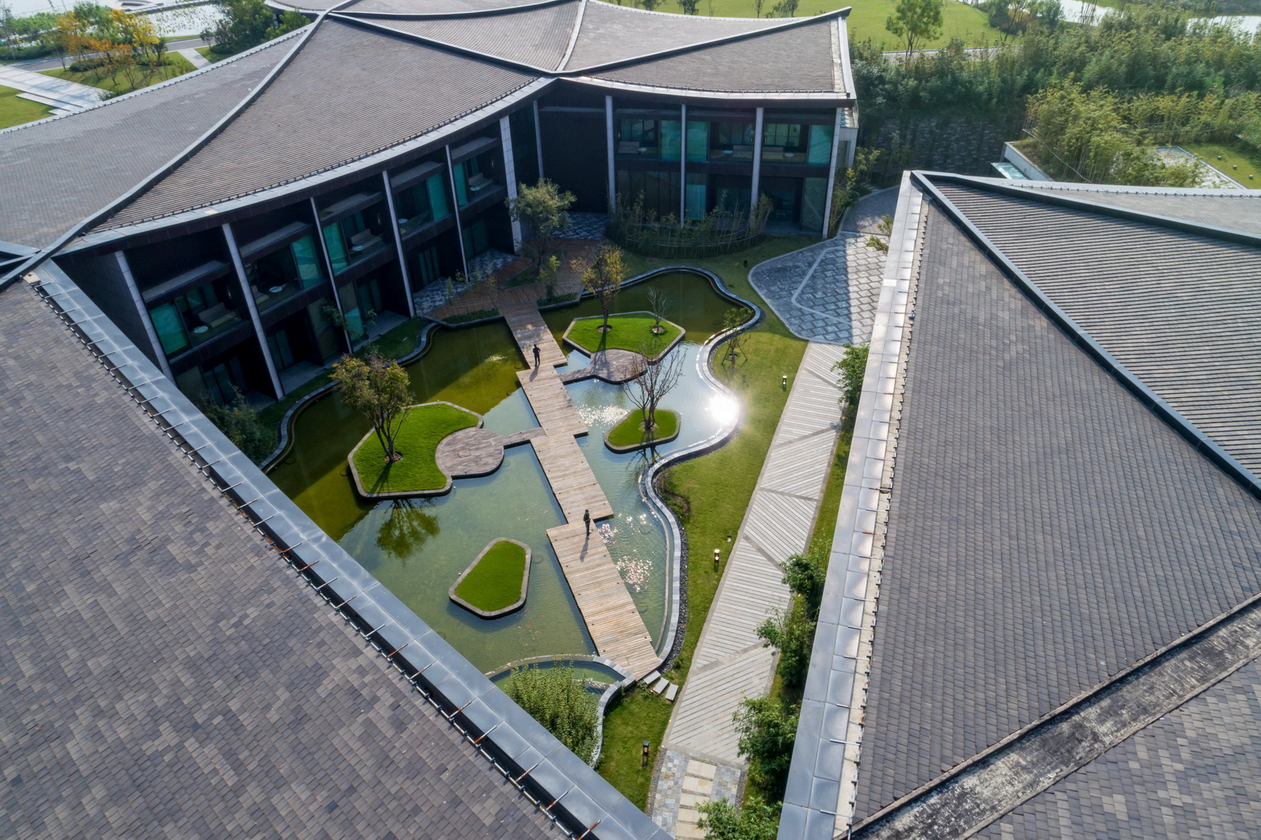 開(kāi)封建業(yè)鉑爾曼酒店坐落于北宋古都開(kāi)封古城墻內(nèi),毗鄰著名景點(diǎn)清明上河園。項(xiàng)目延續(xù)開(kāi)封水文化,以院落與坡屋面為主題,將"水院"思路貫串設(shè)計(jì)始終,傾力打造新時(shí)期"宋韻"文化背景下的主題酒店。景觀打造從中國(guó)傳統(tǒng)的建筑理念與現(xiàn)代設(shè)計(jì)風(fēng)格入手,以古城為背景,將交錯(cuò)的湖泊與精致的花園相結(jié)合,營(yíng)造自然景觀與人文景觀和諧統(tǒng)一的主題生態(tài)度假酒店,再現(xiàn)開(kāi)封六朝古都的歷史人文風(fēng)采。