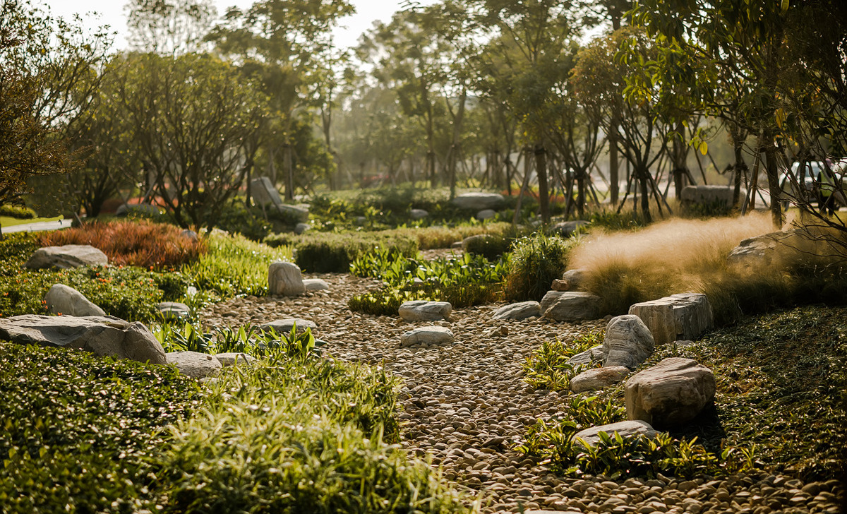 前海環(huán)境和綠化“雙提升”工程屬深圳市前海自貿(mào)區(qū)政府主導(dǎo)建設(shè)項目,是2017年自貿(mào)新城建設(shè)重中之重的“一號工程”,也是積極響應(yīng)深圳市政府“質(zhì)量提升年”有關(guān)部署的一項重要舉措,對全面提升前海門戶及公共空間綠量和景觀形象,建立公共空間系統(tǒng)建設(shè)主骨架基底,高標(biāo)準(zhǔn)建立公共空間系統(tǒng)管理體系具有重要意義。該項目按實施區(qū)域分為桂灣片區(qū)景觀工程(一期)、前灣片區(qū)景觀工程(一期)及前灣一路景觀廊道市政工程(景觀部分)三個項目。依托前海石、演藝公園點亮前海灣兩區(qū)濱海岸線,打造前灣一路、夢海大道、沿江高速三條迎賓主干線,項目重點為前海門戶入口、七號景觀橋、桂灣三路入口、前灣二路節(jié)點、前海石公園等。項目提升目標(biāo)為即時景觀效果趕超深圳福田中心區(qū)現(xiàn)狀,基本實現(xiàn)桂灣、前灣綠色網(wǎng)絡(luò)基底,營造綠意盎然的前?;盍@林新區(qū)形象。前海項目紫荊園在迎接香港回歸20周年之際開園,香港特首林鄭月娥與省委常委、市委書記王偉中共同出席前海深港設(shè)計創(chuàng)意產(chǎn)業(yè)園啟動儀式,并在紫荊園共同種下一顆紅花紫荊,象征深港合作共創(chuàng)繁榮。