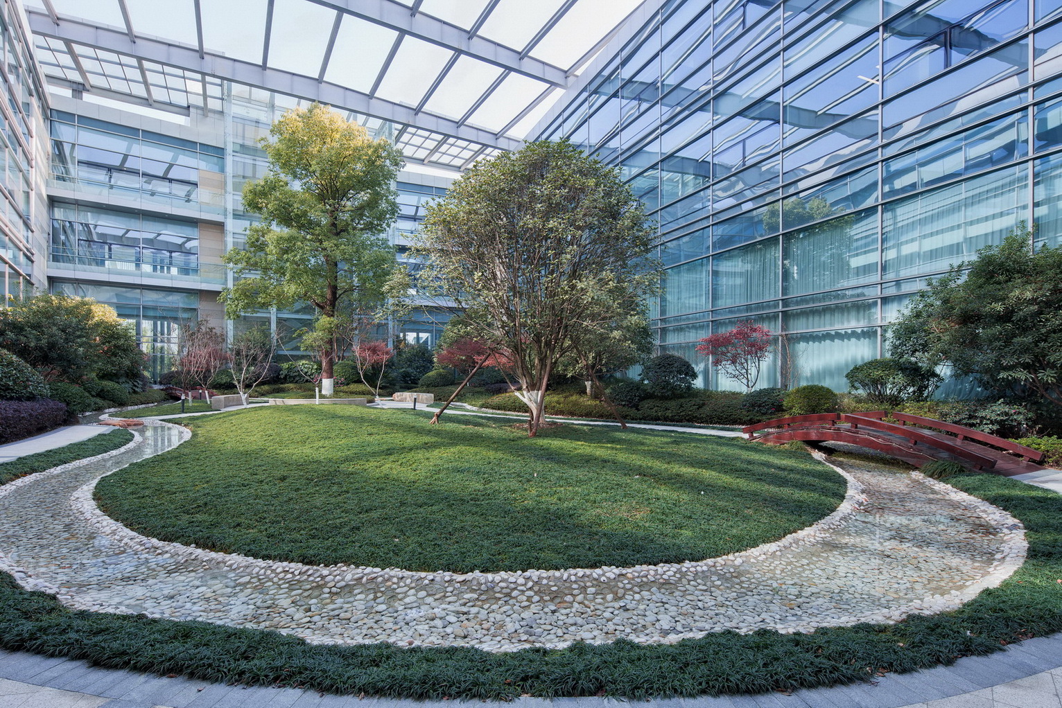 蘇州協(xié)鑫工業(yè)應(yīng)用研究院是協(xié)鑫集團(tuán)總部所在地,其主要滿足協(xié)鑫集團(tuán)及關(guān)聯(lián)企業(yè)在光伏、電力等領(lǐng)域的科研需求。項(xiàng)目采用了自然式園林景觀風(fēng)格,整體大氣簡潔,地形起伏自然,層次分明;庭院結(jié)合自然水系,曲線流暢植物配置因形就勢(shì),疏密有致。此外,由于項(xiàng)目地表水位高,植物生長易積水,普邦股份為此硏發(fā)設(shè)計(jì)岀可持續(xù)、美觀、低成本造價(jià)的樹木根部低成本自動(dòng)排水系統(tǒng)構(gòu)造,該項(xiàng)成果也已獲得國家實(shí)用新型專利。