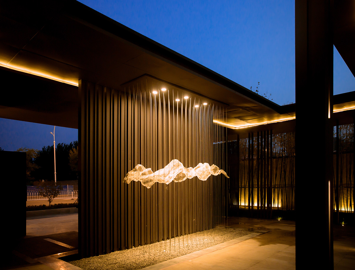 保利·堂悅作為新中式風格的地產項目展示區(qū),展現(xiàn)出了一個承古啟今的院禮府邸,提煉古風,演繹今景,經典精鑄,雋永典藏的別致景觀。靜謐幽深的庭院,傳承中國千年棲居夢想的載體,是人們記憶中的象征。重門之下,庭院深深,各處設計細節(jié)中都體現(xiàn)了山水相望的古風意趣又不失現(xiàn)代意味將新中式的風格體現(xiàn)的淋漓盡致。
