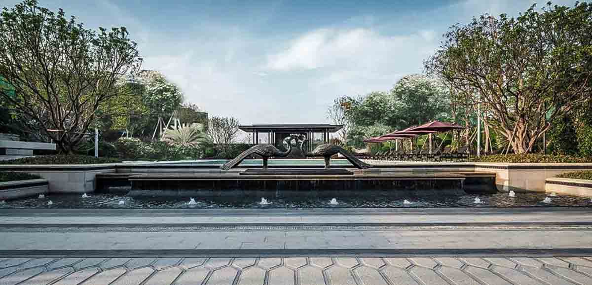 聯(lián)發(fā)·海峽一號位于廈門第四道海灣安海灣畔,周邊比鄰世上最長的梁式石橋“五里橋”歷史古跡,文化悠久,具有深厚的人文底蘊。項目溯源安海灣海濱文化,結(jié)合中式院落精神,采用與建筑風(fēng)格相契合的新亞洲風(fēng)格,借鑒古典私家園林的造園藝術(shù)手法,以叢林夾道、迂回游廊及枯山水的形式延續(xù)曲徑通幽、移步換景的空間氛圍,并將象征家庭美滿富貴的孔雀和牡丹元素融入設(shè)計,力圖構(gòu)建與海灣風(fēng)情文化與傳統(tǒng)文化相統(tǒng)一的居住格局。