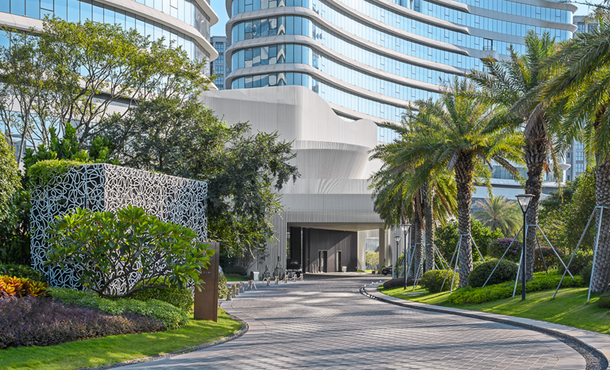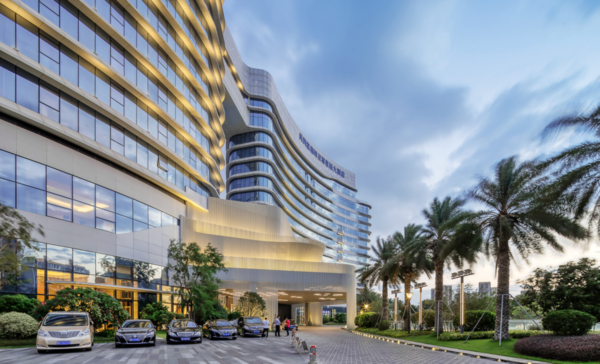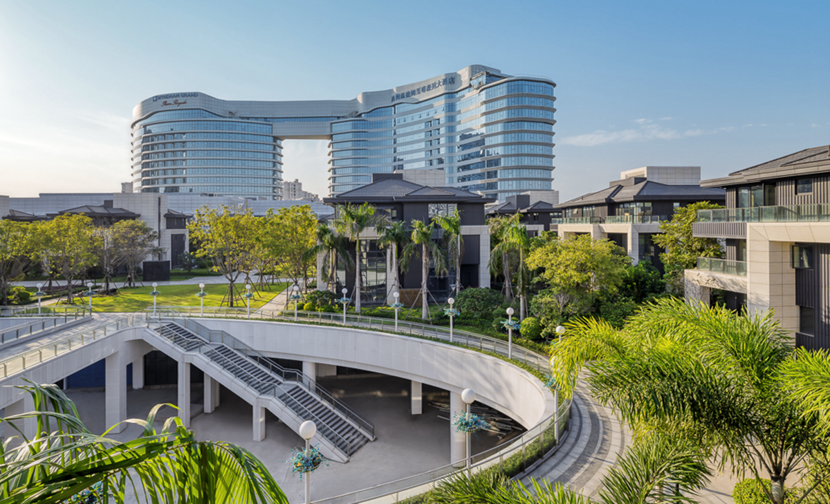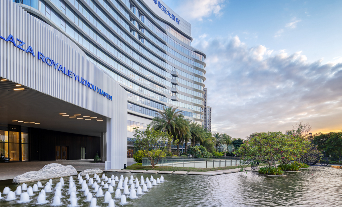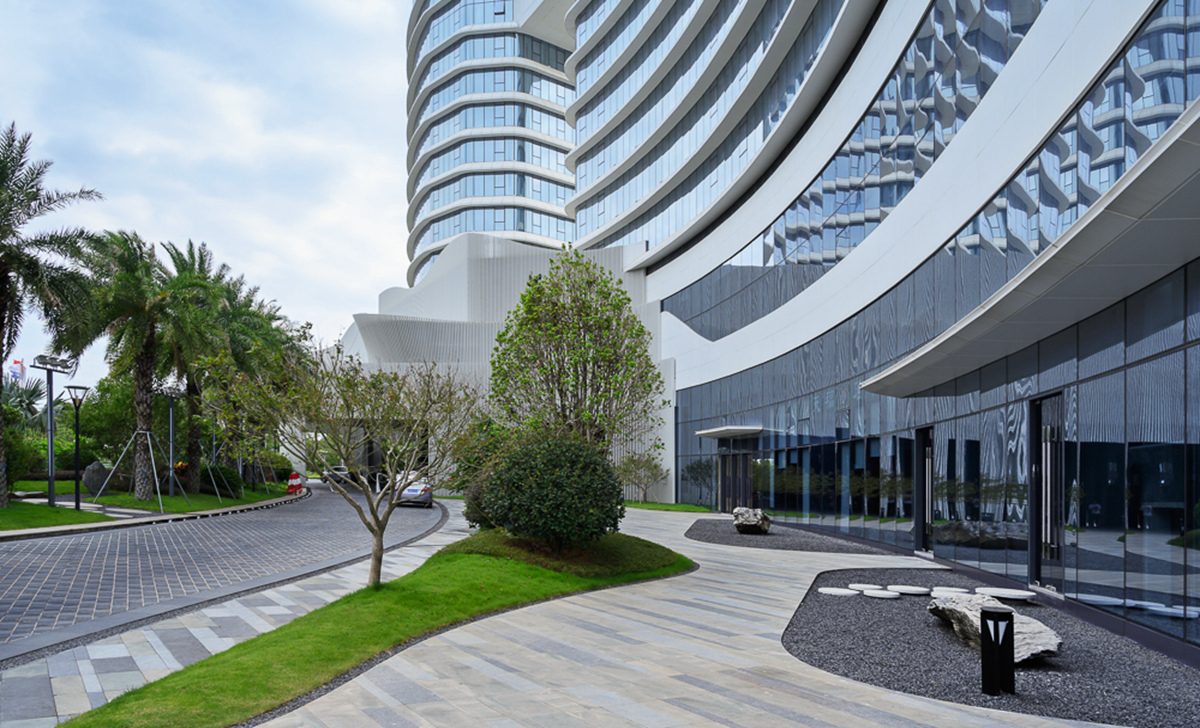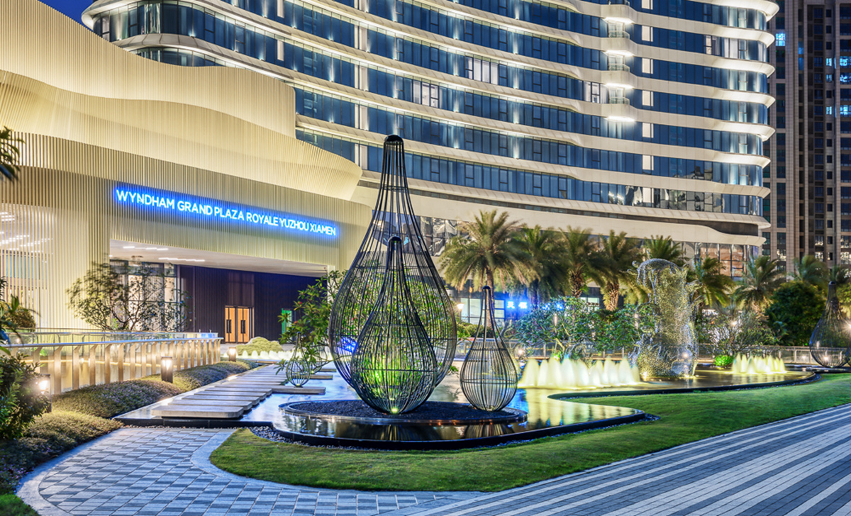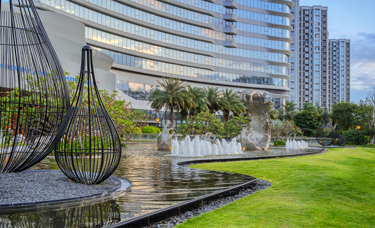 禹州溫德姆至尊豪廷大酒店建筑形體輪廓優(yōu)美,結合曲線表達海岸線及水的元素,凸顯濱水建筑特征。項目注重景觀細節(jié),在近人尺度與建筑關鍵造型部位做細部設計,以襯托酒店建筑的高端和品質。景觀建設融入“海元素”,結合閩南當?shù)靥厣?,營造出海中暢游的空間意境。同時,以特色水景和雕塑為主調環(huán)繞酒店布景,用水的語言展現(xiàn)景觀魅力,訴說廈門記憶。