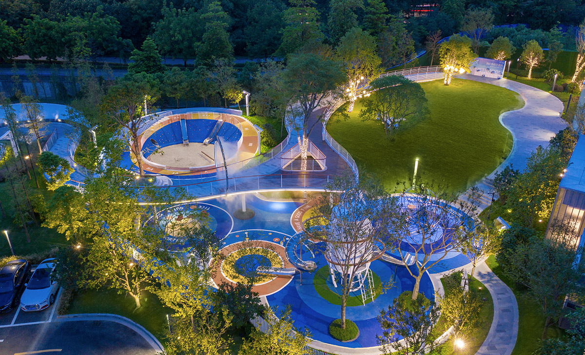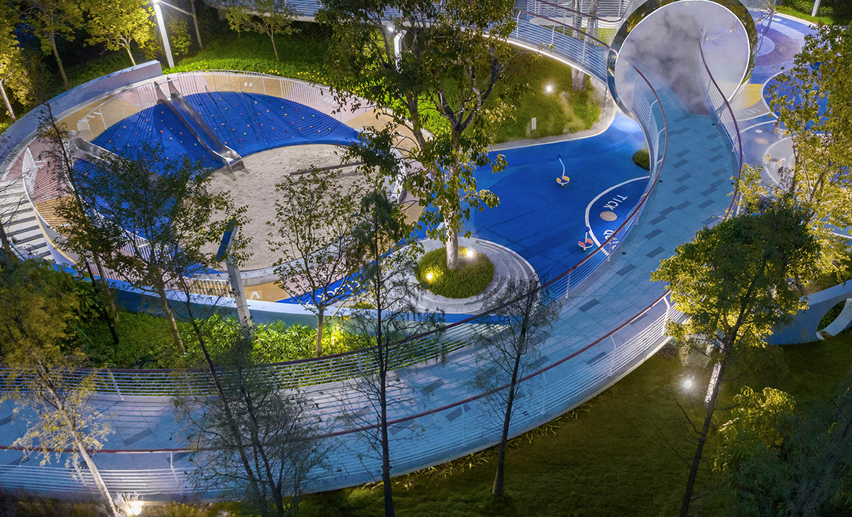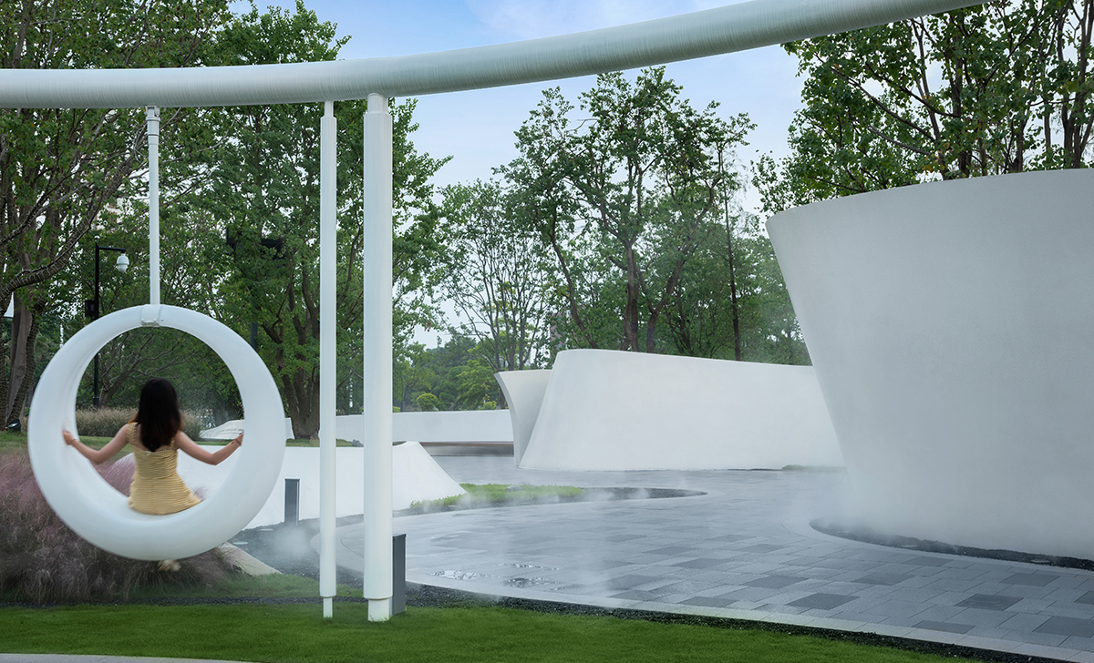 聯(lián)動“時光”給我們的創(chuàng)意腳本,將“時光”這一抽象概念具象化,由此發(fā)散成多元化的功能落點,對公園進行功能配置,與此同時將“時光”高度抽象化成流暢的曲線。通過用多樣的“時光”曲線容器承載不同的功能分區(qū),以時光碎片、時光隧道、時光秋千、時光的橋、時光樂園等節(jié)點設(shè)置,打造多功能、多互動的趣味公園,并利用高差營造多維度、多尺度的空間氛圍。時間將會給景觀場地帶來斑駁的痕跡,我們用景觀詮釋時光的意義,善待時光給我們的禮物,讓景觀成為時光的朋友。