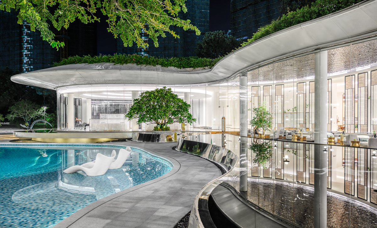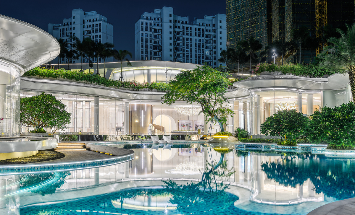 佛山陽(yáng)光城綠島湖位于佛山禪城區(qū)禪港路西側(cè),一座三面環(huán)水的半島上。湖景相依,白鶴為伴,視線開闊,風(fēng)景秀麗。項(xiàng)目通過對(duì)空間的重塑,真正實(shí)現(xiàn)了建筑、景觀、室內(nèi)三位一體的無縫銜接,不分彼此,渾然一體。項(xiàng)目在材料選擇上,如泰科石、馬賽克,飾面石材等,均經(jīng)過多次篩選對(duì)比、排版,務(wù)求達(dá)到最佳的視覺效果。