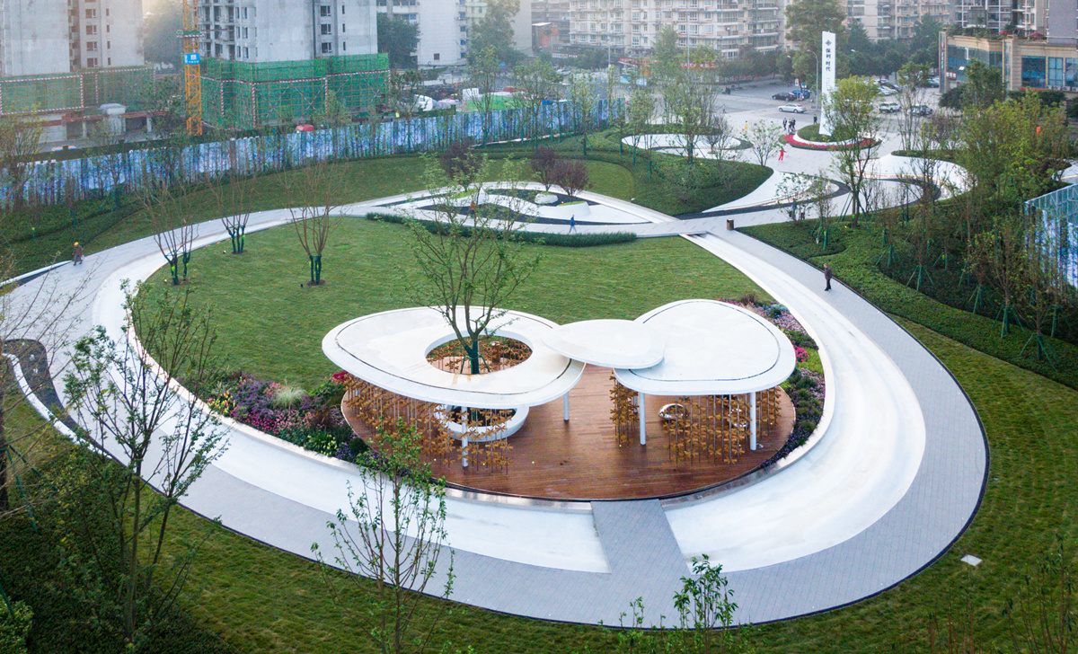 保利時(shí)代首開區(qū)以一顆發(fā)芽的、向上生長的種子為序幕,演繹富有生命情感的三大空間進(jìn)程,打造出根系廣場、種子客廳以及漂浮水景三大景觀。