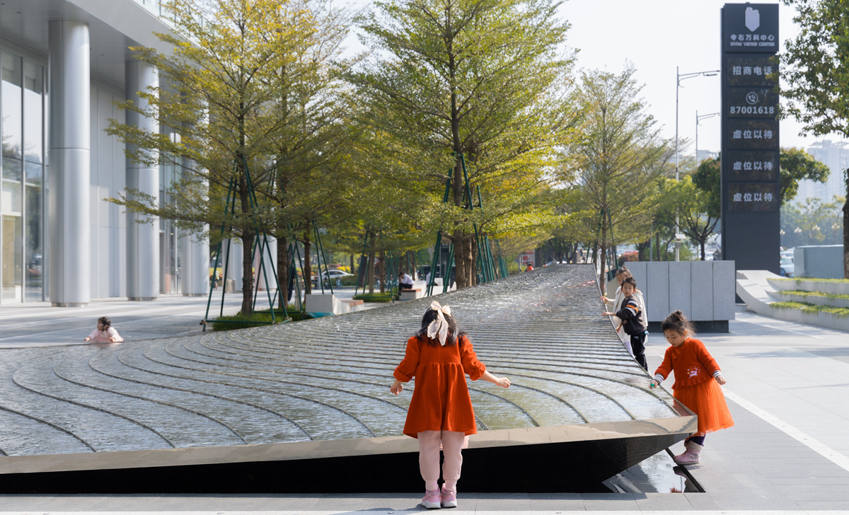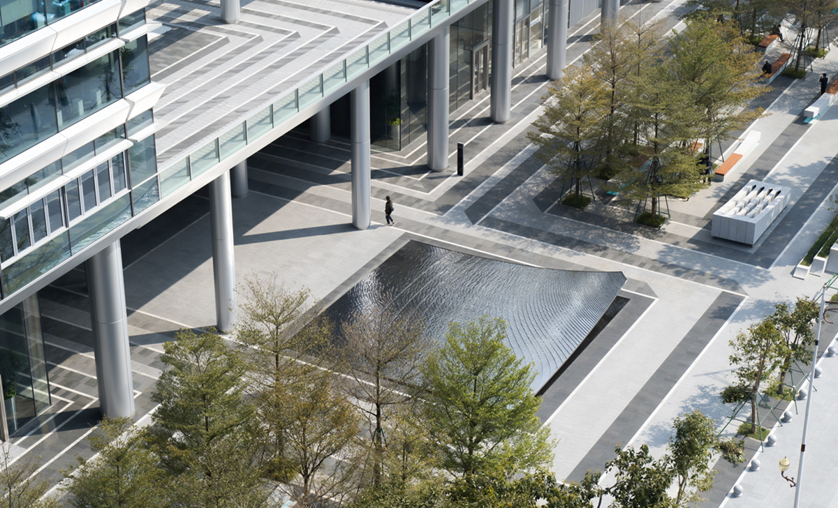 寺右萬科中心整體鋪裝以“漣漪”為主概念,運用黑白灰三種色系渲染極簡風格。項目巧妙運用江河、龍舟、微風等景觀元素,將水澤之畔的美好植入城市中央,不僅為周邊住戶提供綠色生態(tài)的休憩空間,更為商務辦公人士提供高品質的現(xiàn)代辦公交流空間。
