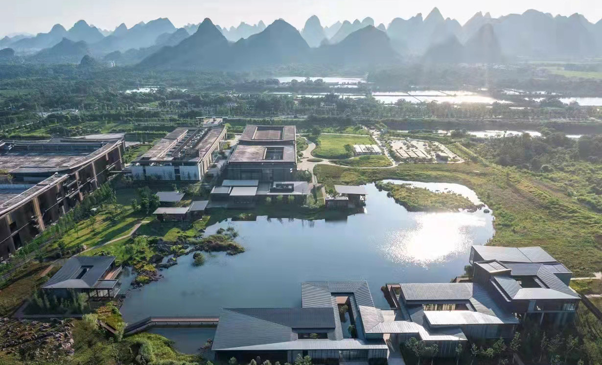 在風(fēng)光旖旎的山陵之間,十如時(shí)尚園與桂林山水碰撞的激情,賦予了可持續(xù)發(fā)展園林出塵與靈動之感。項(xiàng)目堅(jiān)持可持續(xù)發(fā)展理念,尊重自然,讓十如在田野與疏林之中隱沒,融入自然并成為自然的一部分。當(dāng)邁入十如的大門,處處彌漫的生態(tài)禪意在心底頓生清明。深聞空氣中田野的芬芳,感受十如與山水的融合,感受十如在山野的生長。