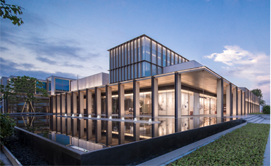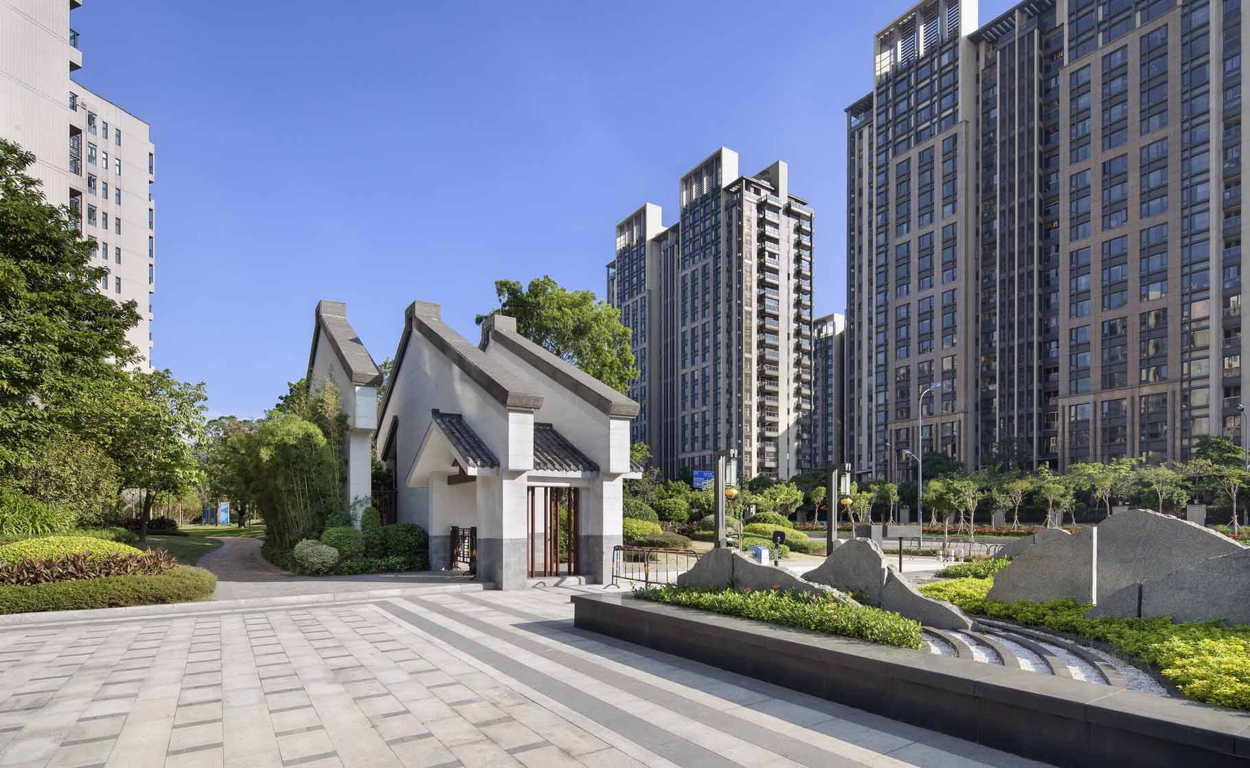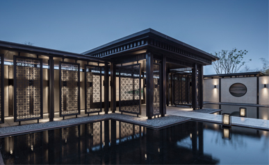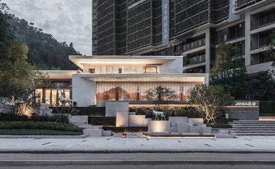 保利玥府位于江門新會(huì)古井,古井與崖山是著名的崖山海戰(zhàn)發(fā)生地,此戰(zhàn)之后,南宋宣告覆滅,保利玥府設(shè)計(jì)選擇讓景觀“消隱”,以極簡的手法來烘托建筑讓建筑與景完美交融。